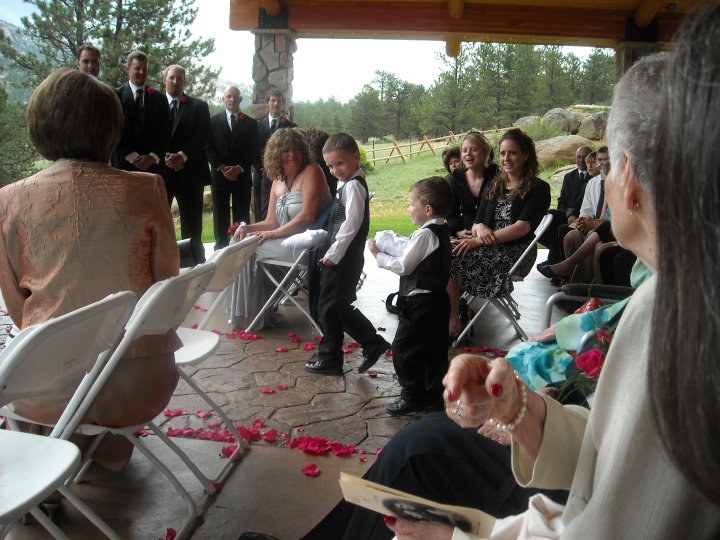 Since Caleb decided to get a little curious a few days ago with our wire cutters, we have been unable to plug in our laptop, which holds all of our Estes Park pictures. Our new battery cord has been shipped! So we have yet to make a slide show to share with you all. Thanks to Facebook though, many family members have posted wedding pictures to share with you. So here are a few more of the wedding...